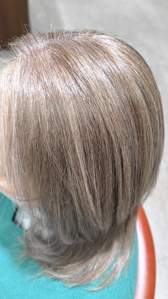 白髪の黄ばみを抑え、クールな透明感を演出します。白髪をオシャレに見せたい方にぴったりです。