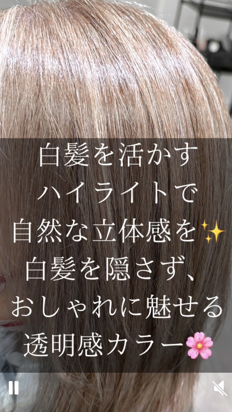 白髪を隠すのではなく、白髪を「魅せるカラー」で、自然な立体感と透明感のある髪色を楽しみます。