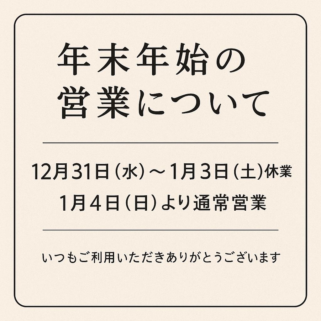 年末年始の営業スケジュールは、下記の通りとさせていただきます。